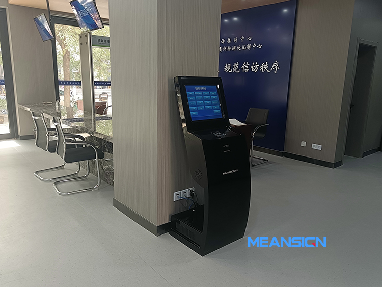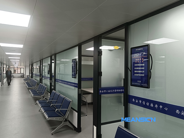 在糾紛化解中心接待大廳,放置排隊(duì)取號(hào)機(jī),前往咨詢辦理業(yè)務(wù)的群眾,在取號(hào)機(jī)選擇“登記取號(hào)”類別進(jìn)行取號(hào),接著登記區(qū)會(huì)依次呼叫號(hào)碼牌辦事人員前往窗口。在與群眾訴求溝通了解后,工作人員會(huì)指引群眾到取號(hào)機(jī),選擇相對(duì)應(yīng)的業(yè)務(wù)類別取號(hào)。排隊(duì)取號(hào)機(jī)支持多種業(yè)務(wù),自定義業(yè)務(wù)類型,號(hào)票打印,手動(dòng)取號(hào)、刷身份證取號(hào)。接待大廳登記區(qū),吊裝叫號(hào)顯示屏,顯示當(dāng)前正在呼叫的號(hào)碼,下一位辦理的號(hào)碼,維護(hù)現(xiàn)場(chǎng)秩序,規(guī)范業(yè)務(wù)流程。每個(gè)接待室門口,同樣安裝豎屏顯示屏,顯示每個(gè)接待室的門牌號(hào)、日期時(shí)間、單位名稱、溫馨提示等信息。當(dāng)有業(yè)務(wù)辦理排隊(duì)時(shí),門口屏?xí)棾雠抨?duì)叫號(hào)隊(duì)列,顯示當(dāng)前辦理的號(hào)碼,下一位辦理的號(hào)碼。