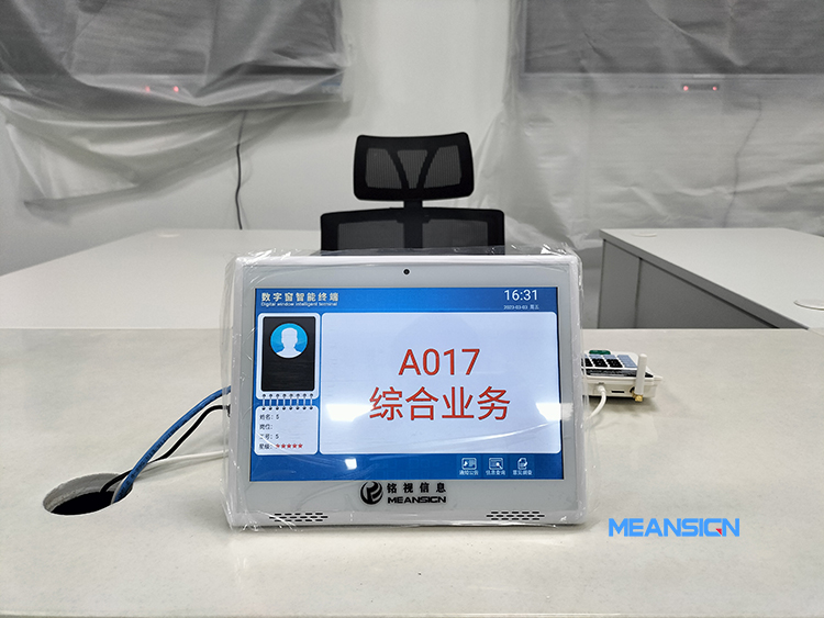 每個服務窗口,吊裝叫號顯示屏,同時顯示窗口編號、正在辦理業務的號碼,以及叫號請XX號到X號窗口。窗口顯示屏的容,可以根據需要在排隊系統主機上進行設置,如顯示的文字、顯示效果、滾動速度。每個服務窗口,都分別配備一個硬件呼叫器(工作人員用于結束當前業務,呼叫下一位辦理人員);服務評價器,用于顯示工作人員的姓名、崗位、工號,以及應用場所的名稱,時間,當前的辦理編號,辦理業務,還有對本次服務的評價。
